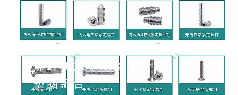 3-1988十字槽盤頭螺釘和彈簧墊圈組合件 7.GB/T9074.7-1988十字槽小盤頭螺釘和彈簧墊圈組合件 8.GB/T9074.8-1988十字槽小盤頭螺釘和彈簧墊圈及平墊圈組合件 9.凹頭螺釘|內六角頭螺絲|窩頭螺絲 10.槽頭尖端螺釘,