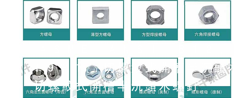 六角螺母 Hexagon nuts 方螺母-C Square nuts 六角頭螺釘 Hexagon screws 六角頭圓柱端 緊定螺釘 Hexagon set screws with full dog point 薄型方螺母-B Square nuts without bevel (pressed nuts)六角頭木螺釘 Hexgon hea
