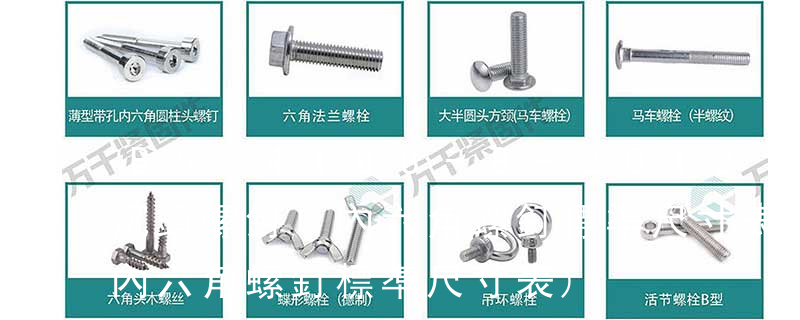 BS 4168《內六角螺釘和板手.米制系列》,我們國家的內六角螺釘和板手的標準是分開的:GB/T 70.1-2008 內六角圓柱頭螺釘 GB/T 70.2-2015 內六角平圓頭螺釘 GB/T 70.3-2008 內六角沉頭螺釘 GB/T 5356-2008 內六 螺栓有:1、方頭螺栓,2、半圓頭方頸螺栓,3、十字槽盤頭螺釘,4、內六角沉頭螺釘,5、方螺母C級,6、蝶形螺母,7、六角頭螺栓,8、十字槽盤頭自攻螺釘。大小有M18、M6、M8、M16、M10、M12、M14、M20等型號。通常用