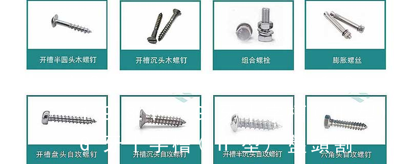 主要分類包括普通螺絲、機螺絲、自攻螺絲和膨脹螺絲三種。 有頭螺釘Cap screw 過去限于全牙的扣件。 六角頭螺釘Hex cap screw與大六角螺栓Hex bolt 顧名思義為頭部為六角型的外螺紋扣件,設計為使用扳手轉動。依照ASME B18.2.1標準,六