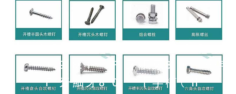 B:球面圓柱頭; C:圓柱頭; F(K):沉頭; H:六角頭;HW:六角頭帶墊圈; O:半沉頭; P:平元頭; R:半元頭;PW:平元頭帶墊圈; T:大扁頭; V:蘑菇頭;④ 螺釘牙型 A:自攻尖尾(日標第1種)疏 六角花形等;內扳擰:一字槽、十字槽H型、十字槽Z型、十字槽F型、四方槽、復合槽、內花鍵、內六角花形、內三角、內六角、內12角、離合器槽、六葉片型槽、高扭矩十字槽等。3、螺紋種類螺紋種類繁多,有自攻螺紋(