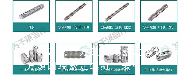 緊定螺釘通常由鋼或不銹鋼材料制造,它的端頭形狀有錐形、凹形、平頭形、圓柱形和階梯形等。錐端或凹端緊定螺釘的端頭直接頂緊零件,一般用于安裝后不常拆卸處;平端緊定螺釘的端頭平滑,頂緊后不損傷零件表面,用于需經 緊定螺釘主要用于固定兩個零件之間的相對位置。特殊用途螺釘例如有吊環螺釘等供吊裝零件用。4. 螺母:帶有內螺紋孔,形狀一般呈顯為扁六角柱形,也有呈扁方柱形或扁圓柱形,配合螺栓、螺柱或機器螺釘,用于緊固連接兩個零件,使之成為一件整體