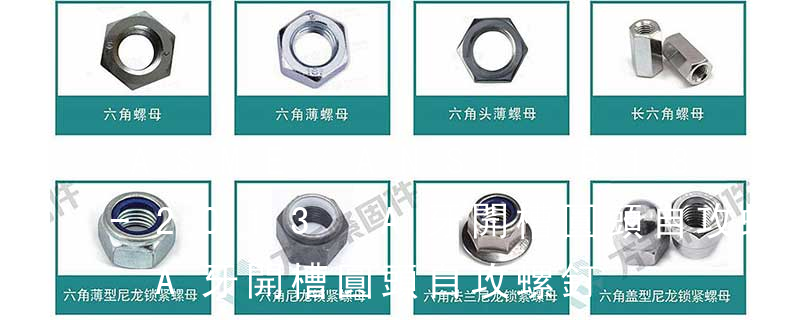 螺母依據屬性主要有國標(GB)、德標(DIN)、國際標準(ISO)、日標(JIS)、美標(ASTM/ANSI)等標準。其中、國標、德標、日標用M表示(例如M8、M16),美制、英制則用分數或#表示規格(如8#、10#、1/4、3/8)。 1、Flat:平頭 (鎖入后,頂部與工作件齊平)2、Oval:色拉頭、O頭、半沉頭 3、Round:圓頭 4、Pan:圓扁頭 5、Truss:大圓扁頭 6、Hex:六角頭 A-5:Finish Code/外觀處理。公制自攻螺絲 :于品名后方直接標示 Tapp