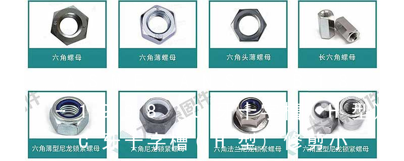 螺栓有:1、方頭螺栓,2、半圓頭方頸螺栓,3、十字槽盤頭螺釘,4、內六角沉頭螺釘,5、方螺母C級,6、蝶形螺母,7、六角頭螺栓,8、十字槽盤頭自攻螺釘。大小有M18、M6、M8、M16、M10、M12、M14、M20等型號。通常用