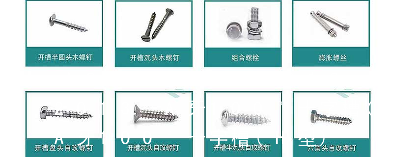 外扳擰:六角、六角法蘭面、六角凸緣、六角花形等;內扳擰:一字槽、十字槽H型、十字槽Z型、十字槽F型、四方槽、復合槽、內花鍵、內六角花形、內三角、內六角、內12角、離合器槽、六葉片型槽、高扭矩十字槽等。3、 自攻螺釘選用通常的規則:自攻為4個螺距,機械螺釘為3個螺距,這是最小的旋合長度,按照實驗的條件會有所加長。每一個自攻螺釘都是由頭部、桿部和桿部末端三部分組成的。每一個自攻螺釘的構成都有四大要素:頭部形狀、扳