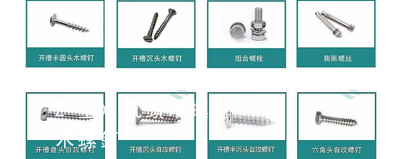 木螺釘有十字槽沉頭、十字槽半沉頭、十字槽圓頭、開槽(一字槽)沉頭、開槽半沉頭、開槽圓頭、六角頭等幾種,公稱直徑有1.6、2、2.5、3、3.5、4、5、6、7、8、10等系列,長度有6、8、10、12、16、20、25、3